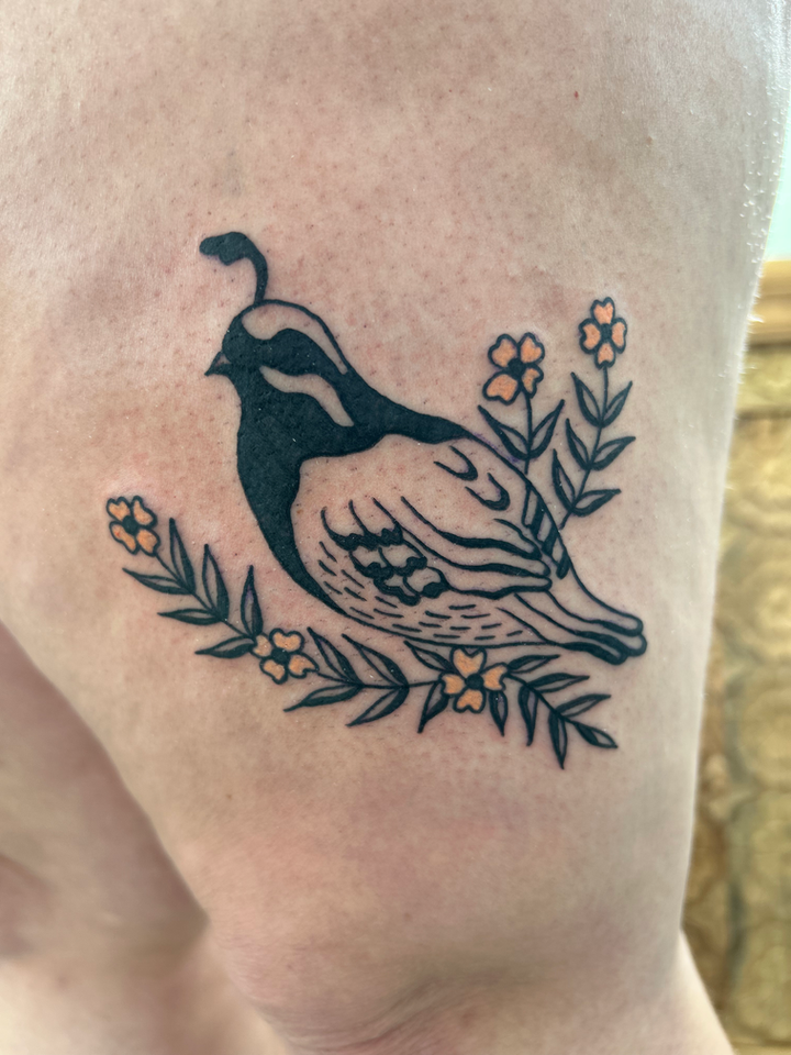 Hello! I'm Shea. I've spent 20 years living in desert and have been tattooing for the last 5 years. I've participated in numerous art shows, created t-shirts for local businesses, and painted the backdrop at our deserts iconic, Pappy & Harriets, all before getting into the tattoo industry.